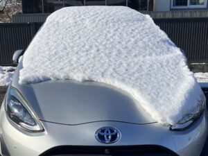 先日の大雪で、弊社の北川部長が使用する営業車がブラックジャックみたいになってました。